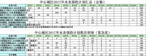 2017年計(jì)劃強(qiáng)檢DN15-600水表726只,2017水表強(qiáng)檢工作由管網(wǎng)部負(fù)責(zé)具體實(shí)施,客戶(hù)服務(wù)部、水表檢定中心全力配合共同監(jiān)督執(zhí)行。