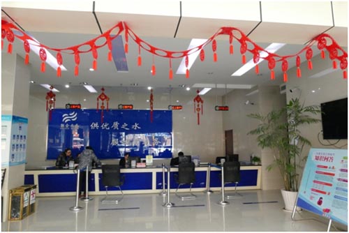公司大門口大紅燈籠高高掛,預(yù)示著來年的紅紅火火,城區(qū)客戶服務(wù)部大廳及洋河、皂河、龍河區(qū)域供水服務(wù)中心大廳都煥然一新,被紅色的中國結(jié)、窗花裝扮一新,到處一派喜慶、祥和、生機(jī)勃勃的景象,表達(dá)著宿遷供水人對全市人民最美好的新年祝福和對來年公司大好發(fā)展的最深切期盼。