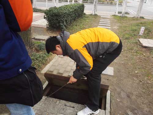 (圖:稽查人員現(xiàn)場清查公廁水表)