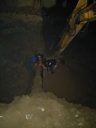 當(dāng)天下午冷天氣突然來襲,刮起大風(fēng),下午17點半下起雨來,這給維修增加了不小的難度。但是維修員為確保供水,面對風(fēng)雨,毫不懼色,加班加點的努力搶修,至晚上20點半左右,經(jīng)過維修員的不懈努力終于將破損點修復(fù),保障了供水。