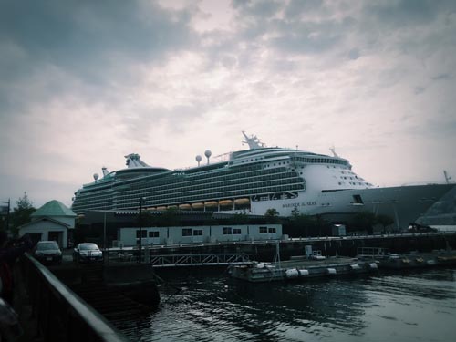 雖然去過(guò)海邊游玩也乘坐過(guò)海上游船,但是對(duì)于大海和大型郵輪的概念并不清楚,腦海中大概只有《泰坦尼克號(hào)》那部電影中的壯闊景象。19日準(zhǔn)時(shí)到了吳淞口碼頭,遠(yuǎn)遠(yuǎn)地看過(guò)去就知道了海洋水手號(hào)的龐大,登船之后可以說(shuō)是震撼,真是一座漂浮在海洋上的城市。雖然船上隨處都有清晰的指示牌,在電梯口附近還有電子查詢屏幕,但是由于船體真的太大所以在船上的幾天還是經(jīng)常走錯(cuò)方向。整個(gè)船上游客加上船員有三千多人,船上有充足的設(shè)施,休閑娛樂(lè),品嘗美食,悠閑的時(shí)光盡可以放松,去體會(huì)自己想要的方式。不管是白天還是晚上都可以來(lái)到位于五層的皇家大道,白天是購(gòu)物的天堂,而到了夜晚則燈火輝煌,富麗堂皇,人頭攢動(dòng),各種派對(duì)輪番上演,盡情體驗(yàn)來(lái)自皇家加勒比的熱情。船上最大的劇場(chǎng)—薩沃伊大劇院則是每晚必去的地方,精彩的演出博得陣陣掌聲和尖叫聲。而對(duì)于我去的最多的地方則是十一層甲板,這里有跑道,泳池,健身中心、自助餐廳。好久沒(méi)有專門(mén)健身,所以每天的日程里有健身,泡澡,徹底的放松,吹著海風(fēng),看一望無(wú)際的大海。