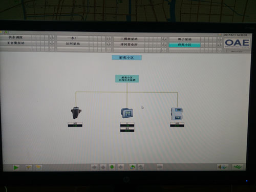 但管網(wǎng)水的水質(zhì)是通過水檢中心定期取水檢測,水質(zhì)數(shù)據(jù)結(jié)果存在滯后性, 為了提高管理水平,實時掌握水質(zhì)情況,宿遷銀控自來水有限公司在主要管道上安裝水質(zhì)檢測儀表(包含濁度儀、PH計、余氯分析儀),并且通過數(shù)據(jù)專線將水質(zhì)數(shù)據(jù)實時傳輸?shù)蕉畯S調(diào)度中心。此項工作由機電部負(fù)責(zé)實施,機電部接到通知,迅速制定安裝方案和數(shù)據(jù)上傳方案,從選址到儀表安裝、調(diào)試,數(shù)據(jù)上傳,機電部親力親為,最終完成了管網(wǎng)水質(zhì)監(jiān)測點的儀表安裝和數(shù)據(jù)上傳工作。實現(xiàn)了管網(wǎng)中段和末梢的水質(zhì)數(shù)據(jù)的實時傳輸,對制水和管網(wǎng)水質(zhì)都提供了反饋。為供優(yōu)質(zhì)之水,又增加了一個有力保證。