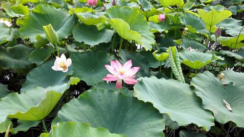 “惟有綠荷紅菡萏,卷舒開合任天真!币煌麩o際的荷園,太美了。紅的、白的,單瓣的,復(fù)瓣的,在翠綠的荷葉伸張卷曲的襯托下,她們開放閉合自如,各種風(fēng)姿,天然無粉飾,清麗脫俗,宛如一個(gè)個(gè)純潔美麗的姑娘,微笑著向我們招手問好,用她們自然獨(dú)特的方式歡迎我們的到來。我們也真誠(chéng)地與荷花親近,湊上前去與她們合影留念。開心的在荷園里奔走,感受著這份美妙的心情,迎面撲來的荷香,淡雅清細(xì),令人神清氣爽。這樣一幅大自然饋贈(zèng)的美圖,讓我沉醉在畫中,心情是如此的舒暢。此刻,忘記了騎行路上的累和苦。