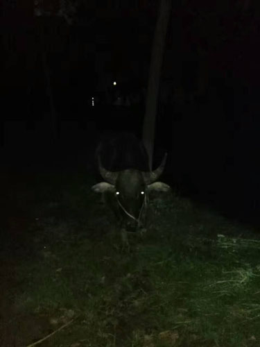 (圖1:洋河夜間查漏:漆黑夜里忙查漏,不眠水牛來作伴)