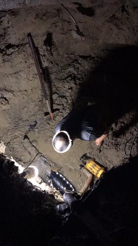 在武圩村, 110過路主管道遭暴雨破壞,由于漏水點(diǎn)在河里,也是無法使用挖掘機(jī)作業(yè),只能人工開挖,由于該管道做了頂管施工,管埋較深,一鍬一鍬挖至深達(dá)2.5米處,終于,破損的管子露出了真面目。此時(shí)已過了晚飯時(shí)間,維修人員整個(gè)人都陷在泥水里,大雨剛過,土質(zhì)疏松,坑邊不時(shí)有坍塌,突然一塊小石塊滾落,劃傷了額頭,二話不說,拿起擦汗的毛巾裹住傷口,繼續(xù)戰(zhàn)斗。人雖已筋疲力盡但一刻都不敢停歇,“那么多人等著吃水用水呢”,此時(shí),這就是維修人員心里唯一的念頭。根據(jù)管道漏損情況,緊急制定出搶修方案、調(diào)配材料,夜里十二點(diǎn)多,經(jīng)歷了饑熱交迫,蚊蟲叮咬,搶修任務(wù)圓滿完成。夜深人靜,更深露重,帶著搶修完成的欣慰,收拾起一身的疲乏,回家……