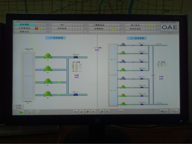 目前,系統(tǒng)已經(jīng)全部完成,所有泵站運行數(shù)據(jù)和水質(zhì)監(jiān)測點水質(zhì)數(shù)據(jù)和三個新建增壓泵站視頻監(jiān)控都已經(jīng)上傳至二水廠調(diào)度中心。這一系統(tǒng)的建成不僅完善了宿遷公司調(diào)度中心的供水調(diào)度系統(tǒng),實現(xiàn)了對各泵站實現(xiàn)了實時監(jiān)控,保證了各泵站的安全運行,還對管網(wǎng)的的水質(zhì)做到了實時監(jiān)測,保證了管網(wǎng)水質(zhì)的安全,為宿遷公司的安全供水工作又增添了一道保障。