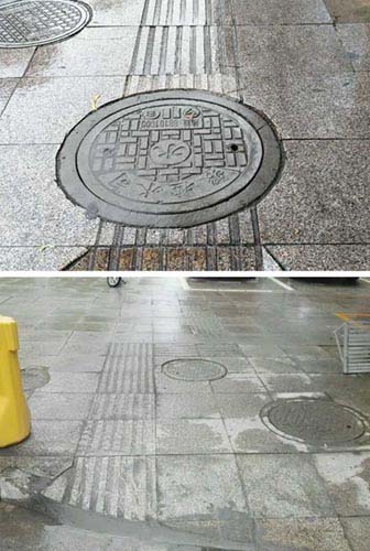 檢查過程中,公司管網(wǎng)部維修員合理分工,按片區(qū)進行了拉網(wǎng)式排查。排查發(fā)現(xiàn),發(fā)展大道與微山湖路交叉口東南側(cè)井蓋、發(fā)展大道中豪西門北側(cè)井蓋、好喜小龍蝦門口井蓋等共15處供水設(shè)施占用盲道。針對排查結(jié)果,管網(wǎng)部制定了詳細(xì)地整改方案與措施。9月6日,工作人員已對十余處供水設(shè)施占用盲道開展了整改工作,力求在9月10前整改完畢。
