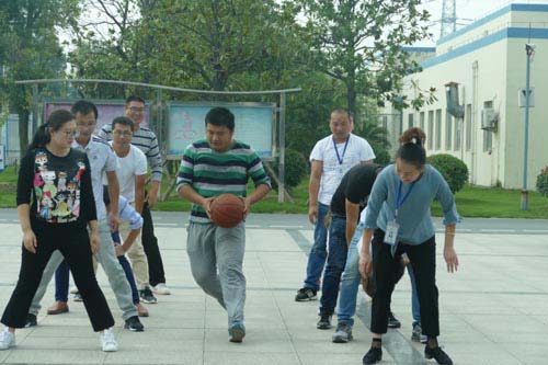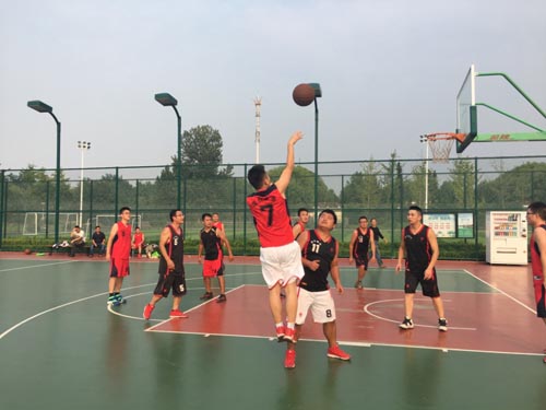 9月28日下午,舉行籃球比賽。連續(xù)一周的陰雨天氣后,中午時(shí)分終于撥云見日。公司員工分為紅—黑兩隊(duì),簡(jiǎn)單的熱身后,一聲哨響,籃球比賽正式開始。身著紅色隊(duì)服的隊(duì)員開局出彩,隊(duì)員之間配合默契,屢屢殺進(jìn)對(duì)方內(nèi)線投籃得分,一路領(lǐng)先。黑隊(duì)緊急調(diào)整戰(zhàn)略,嚴(yán)防死守,步步緊逼,抓住一個(gè)3分空位投籃的機(jī)會(huì)果斷投籃,籃球應(yīng)聲入網(wǎng),也為黑隊(duì)隊(duì)員增長(zhǎng)了氣勢(shì),隨后連連得分。至中場(chǎng)結(jié)束時(shí),紅隊(duì)以16:14微弱的優(yōu)勢(shì)領(lǐng)先。稍作休息后,雙方交換場(chǎng)地,比賽繼續(xù)開始。第三節(jié)比賽中,雙方隊(duì)員都達(dá)到最佳狀態(tài),你追我趕,比分不相上下,直至第四節(jié)比賽最后20秒,黑隊(duì)僅領(lǐng)先紅隊(duì)2分,也給比賽結(jié)果造成懸念。至最后讀秒階段,紅隊(duì)伴隨著兩罰不進(jìn),黑隊(duì)最終以32:30的成績(jī)險(xiǎn)勝紅隊(duì)。