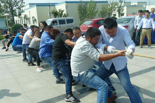 陣陣歡呼聲中,迎來最為激動(dòng)人心的比賽項(xiàng)目——“拔河”。作為每次活動(dòng)保留的傳統(tǒng)項(xiàng)目,“拔河”比賽最能展現(xiàn)團(tuán)隊(duì)凝聚力與實(shí)力。今年與往年不同的是,增加了每組女隊(duì)員的人數(shù),每組15人(10男5女),共有6組參賽隊(duì)伍。比賽采取淘汰賽和循環(huán)賽制,經(jīng)過第一輪初賽,生產(chǎn)技術(shù)聯(lián)隊(duì)、工程公司聯(lián)隊(duì)、行政辦公聯(lián)隊(duì)勝出,而區(qū)域供水聯(lián)隊(duì)、污水隊(duì)、客服隊(duì)?wèi)K遭淘汰。接下來,強(qiáng)強(qiáng)對(duì)決,現(xiàn)場(chǎng)更加激烈,助威吶喊聲響徹整個(gè)廠區(qū)。最終,生產(chǎn)技術(shù)聯(lián)隊(duì)和工程公司聯(lián)隊(duì)以較大的優(yōu)勢(shì)進(jìn)入最終的巔峰對(duì)決。作為最有實(shí)力的老大哥,生產(chǎn)技術(shù)聯(lián)隊(duì)多年來“拔河”冠軍的頭銜無(wú)人撼動(dòng),但工程公司聯(lián)隊(duì)也毫不示弱,氣勢(shì)洶洶,志在必得。兩隊(duì)實(shí)力相當(dāng),場(chǎng)面相當(dāng)激烈。伴隨著最后一局?jǐn)?shù)十秒的僵持,最終工程公司聯(lián)隊(duì)以2:1的成績(jī)戰(zhàn)勝生產(chǎn)技術(shù)聯(lián)隊(duì)獲得最終的勝利。