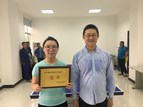 29日下午,在二廠活動(dòng)室舉行乒乓球比賽。初賽階段,所有選手抽簽分組,進(jìn)行3局2勝淘汰賽。“高手”之間的較量更有看頭,賽場(chǎng)上陣陣歡呼,高潮不斷,你來我往,扣殺還擊,小球轉(zhuǎn)動(dòng)大智慧,拼體力更要有腦力,賽場(chǎng)上多次上演峰回路轉(zhuǎn),反敗為勝的場(chǎng)面。重重廝殺后,決出四強(qiáng),分別是機(jī)電部的程堯、水檢公司的王藝錦、制水部的尚旭東以及公司領(lǐng)導(dǎo)尹總。半決賽以及決賽采用5局3勝制,其中,尹總和王藝錦的半決賽之爭(zhēng)最為吸引人的眼球,雙方比分一直緊咬,最后關(guān)頭,王藝錦主動(dòng)攻球,最終以3:1獲勝,四局的比分分別為13:11、10:12、13:11、13:11。進(jìn)入決賽的王藝錦球感爆棚,又擊敗尚旭東,摘得乒乓球比賽的冠軍。