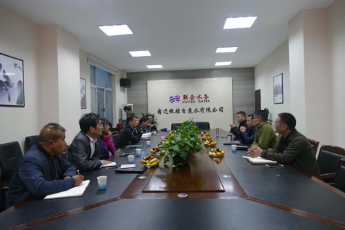 下午,彭董一行自徐州輾轉(zhuǎn)到達(dá)宿遷銀控自來(lái)水有限公司第二水廠,曾真總經(jīng)理、陳少軍副總經(jīng)理在辦公大樓前熱情迎接。雙方直接來(lái)到二樓會(huì)議室座談交流,共商發(fā)展大計(jì)。暮色已深,秉燭夜談,敞開(kāi)心扉,暢所欲言。