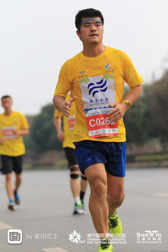 一開始跑步簡單的是想減肥,早上或者晚上跑個3公里,跑完很舒服。后來距離漸漸加長到5公里、8公里、10公里,越跑越想跑,非常迷戀淌汗的感覺,特別是夏天時,跑到全身濕透了再干,然后又濕透。某天在手機(jī)上看到說汗液里含有一種物質(zhì)能使人身心愉悅,原來是這樣啊。巧的是,集團(tuán)這時組織參加咸寧馬拉松,于是我就報名來了。