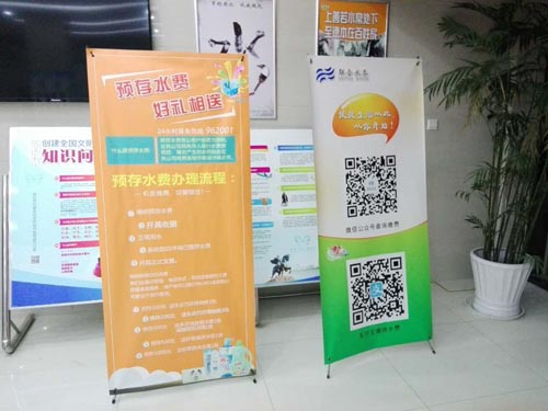 二、營(yíng)業(yè)廳宣傳。營(yíng)業(yè)廳內(nèi)不僅擺放宣傳海報(bào),說(shuō)明宣傳事項(xiàng),擺放預(yù)存水費(fèi)客戶發(fā)放小禮品;同時(shí),安排專人向客戶介紹如何使用支付寶、微信繳費(fèi)、以及水費(fèi)預(yù)存的優(yōu)點(diǎn)、推薦客戶根據(jù)自身情況采用最優(yōu)的繳費(fèi)方式。同時(shí),演示我公司微信公眾號(hào)的功能,讓客戶了解我公司提供的眾多服務(wù)舉措。