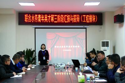 2017年12月9日上午8:30,聯(lián)合水務(wù)青年英才第三階段工程模塊培訓成果匯報與答辯會議在宿遷公司二水廠會議室召開,會議由總部培訓招聘經(jīng)理李震主持,總部人事行政總監(jiān)楊麗霞女士攜總部人力資源部團隊、宿遷公司總經(jīng)理曾真先生、副總經(jīng)理陳少軍先生攜宿遷公司人力資源團隊、工程公司總經(jīng)理梁丹先生攜工程公司各部門經(jīng)理以及5名青年英才參加會議,同時會議還特別邀請了青年英才原所屬部門負責人參與。