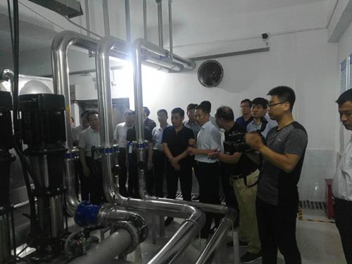 葉興成副局長(zhǎng)從群眾滿意度、行業(yè)建設(shè)、二次供水建改造設(shè)等方面向來(lái)賓介紹了近幾年宿遷市自來(lái)水建設(shè)的情況。宿遷市供水行業(yè)群眾滿意度越來(lái)越高,行業(yè)建設(shè)水平不斷提升,2017年11月,宿遷銀控自來(lái)水有限公司代表江蘇省接受全國(guó)城鎮(zhèn)供水規(guī)范化管理考核位居前列,二次供水建設(shè)管理成為全省示范城市,宿遷銀控自來(lái)水有限公司做出了很大的貢獻(xiàn)。