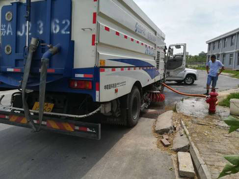 中午10時(shí)30分左右,在巡查到蘇州工業(yè)園區(qū)時(shí),發(fā)現(xiàn)在大明湖路有灑水車在紅色消防栓上違章取水,稽查人員立即拍照取證,并控制住現(xiàn)場(chǎng)車輛及人員。