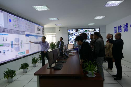 座談會(huì)結(jié)束后,山西稷山同仁一行來到宿遷銀控自來水有限公司第二水廠實(shí)地參觀了制水生產(chǎn)廠區(qū)、調(diào)度中心、水質(zhì)檢測(cè)中心、駱馬湖原水泵站、河湖連通原水泵站等,他們對(duì)宿遷銀控自來水有限公司規(guī)范的管理、先進(jìn)的制水工藝、科學(xué)的供水調(diào)度、嚴(yán)密的監(jiān)控安防系統(tǒng)給予了高度贊揚(yáng),認(rèn)為這是他們前進(jìn)的方向。曾真總經(jīng)理表示,發(fā)展無止境,大家互相溝通交流,互為借鑒,緊跟聯(lián)合水務(wù)集團(tuán)的發(fā)展步伐,爭(zhēng)取取得更好業(yè)績。