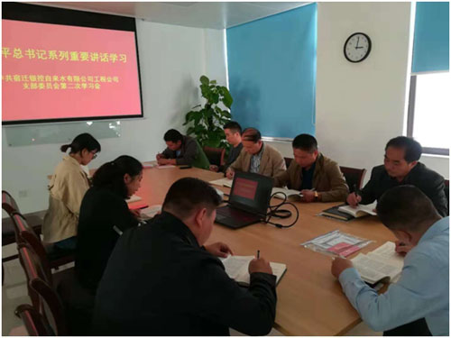 按照市委組織部和宿遷銀控自來水有限公司黨總支要求,工程公司黨支部積極組織《習近平總書記系列重要講話讀本》、《黨章》的學習,10月9日和10月11日下午三點在工程公司會議室開展了第一階段的學習。