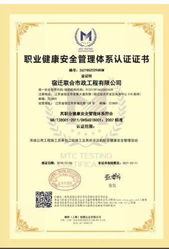 2018年年初,宿遷聯(lián)合市政工程有限公司果斷出擊,正式啟動(dòng)了“三大體系”認(rèn)證工作。