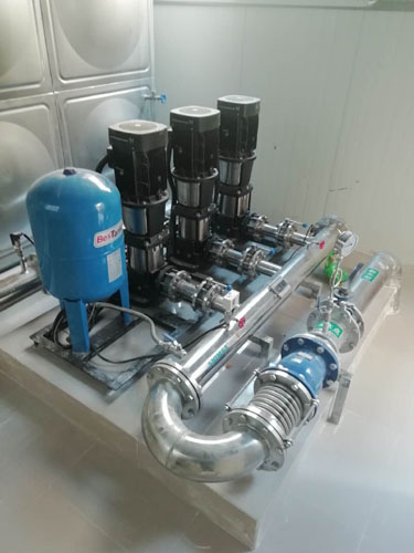 青華學(xué)校是宿遷市委、市政府重點(diǎn)打造的民辦教育工程,目前在校師生7000余人,由于學(xué)校原先的供水管網(wǎng)老化嚴(yán)重,導(dǎo)致學(xué)校宿舍區(qū)高層學(xué)生在用水高峰時(shí)段水量嚴(yán)重不足。根據(jù)青華學(xué)校提出的需求,公司銷(xiāo)售人員及工程技術(shù)人員通過(guò)對(duì)供水現(xiàn)場(chǎng)的考察和嚴(yán)格的用水計(jì)算,經(jīng)過(guò)和學(xué)校領(lǐng)導(dǎo)的反復(fù)論證和協(xié)商,由公司提供的通過(guò)“水箱加變頻增壓機(jī)組”的方式來(lái)解決宿舍區(qū)高層供水問(wèn)題的方案獲得了學(xué)校領(lǐng)導(dǎo)的一致認(rèn)可。