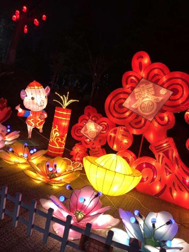 隨后我們隨著人潮來(lái)到了花燈區(qū),這里的花燈燈光搖曳,花團(tuán)緊簇,金豬鬧新春里突顯了豬年與春天的完美結(jié)合,歡樂(lè)滿(mǎn)宿遷則展示了優(yōu)美的宿遷民俗文化,西楚風(fēng)采頌詮釋了現(xiàn)代宿遷人勇于拼搏的時(shí)代精神,所到之處,五彩繽紛,美不勝收。我們家的小家伙們最喜歡的當(dāng)然是童趣憶光年這個(gè)燈區(qū)啦,他們最喜歡電視上才能看到的卡通形象了,花燈呈現(xiàn)出色彩炫麗、童話(huà)般魔幻的色彩,吸引了眾多小朋友觀看,不少小朋友的家長(zhǎng)和游客們拿出相機(jī)或手機(jī),按動(dòng)快門(mén),定格下這美麗的瞬間。我的孩子們完全融入在了虛擬的空間里,流連忘返,久久不愿離去。