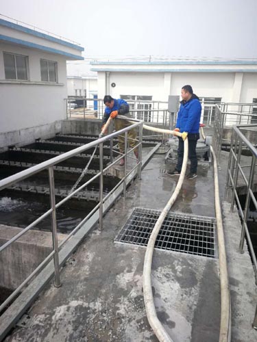 本次機(jī)電部在運(yùn)行配合下,對污水廠斜管進(jìn)行定期沖刷,首先是高效沉淀池停止進(jìn)水,其次將池體內(nèi)沉淀泥水放空,最后利用高壓水槍對池體協(xié)管進(jìn)行沖洗。為不影響生產(chǎn),機(jī)電部全力協(xié)作,最終完成斜管沖洗工作,從現(xiàn)在的運(yùn)行情況觀察,沉淀池運(yùn)行良好。
