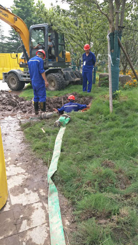 (圖4:管網(wǎng)人員趟泥涉水正在搶修)