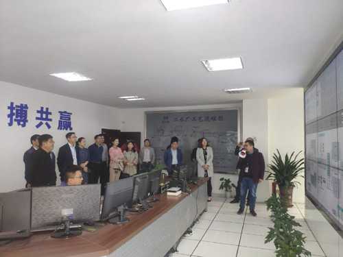 (圖1:各位領(lǐng)導(dǎo)參觀二水廠調(diào)度中心)