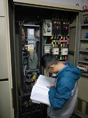 (圖1:機(jī)電設(shè)備部人員正在現(xiàn)場查找變頻器參數(shù))
