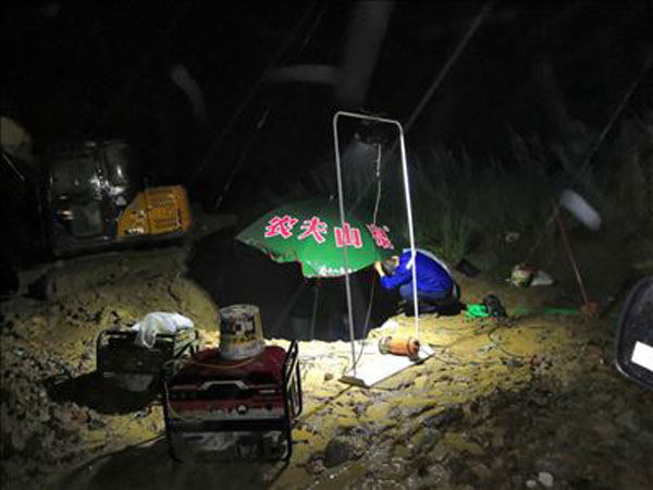 (圖2:忍受蚊蟲叮咬,搶修保供水時(shí)不我待,決戰(zhàn)到深夜)