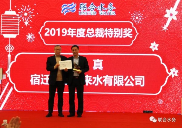 1月20日,聯(lián)合水務(wù)集團(tuán)2020年年會(huì)在咸寧碧桂園鳳凰溫泉國(guó)際酒店召開,上海集團(tuán)總部、各區(qū)域項(xiàng)目公司的帶頭人共計(jì)48名高層管理人員參加會(huì)議,總結(jié)2019、展望2020年,共商集團(tuán)發(fā)展大計(jì)。會(huì)議由集團(tuán)人力資源行政總經(jīng)理?xiàng)铥愊寂恐鞒帧8黜?xiàng)目公司、集團(tuán)各運(yùn)營(yíng)模塊負(fù)責(zé)人分別作了2019年工作總結(jié)和新一年工作計(jì)劃匯報(bào),集團(tuán)高級(jí)副總裁劉猛先生、陳樵先生、副總裁羅斌先生根據(jù)匯報(bào)對(duì)各自負(fù)責(zé)的華中區(qū)、華南區(qū)、北方區(qū)的重點(diǎn)工作和挑戰(zhàn)做了分析與計(jì)劃,向著更高的目標(biāo),不斷奮進(jìn)!2019年,宿遷銀控自來(lái)水有限公司為集團(tuán)營(yíng)收、人才輸出、新項(xiàng)目建設(shè)等做出了突出貢獻(xiàn),總經(jīng)理曾真先生摘得“2019年聯(lián)合水務(wù)集團(tuán)總裁特別獎(jiǎng)”桂冠。集團(tuán)董事長(zhǎng)兼總裁俞偉景先生為曾總頒獎(jiǎng)。榮譽(yù)是激勵(lì),更是鞭策。曾真總經(jīng)理發(fā)表獲獎(jiǎng)感言,感謝集團(tuán)領(lǐng)導(dǎo)對(duì)宿遷公司的關(guān)懷、感謝宿遷公司所有同仁的共同努力、感謝各兄弟公司的鼎力支持,并表示將一如既往,緊跟集團(tuán)發(fā)展步伐,當(dāng)好排頭兵。